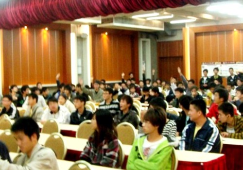第二位出场的主角是来自机械电气学部07机械4班的曾奇师兄,他说到学习和考试中不能够投机取巧,要脚踏实地地去学习,他同样说到在英语学习方面要多读,练习口语,要多参加课外活动,认识更多的朋友。同时也有新生提问与新生代表发表感言的热闹环节。