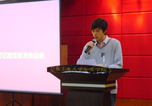 紧接着由团总支副书记唐宝泉发表总结,唐宝泉副书记列举的这个学期所举办的各项活动,说出举办这些活动的成功之处,但同时也存在了一些不足之处,例如干部,干事的积极性有待提高。需要保持优良作风。