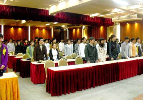 在2009年12月29日晚上6:30在图书馆3号报告厅召开了机械电气学部团总支学生会2009—2010年度上学期总结大会,在6:00左右,出席会议的主席团,各部的部长和干事们都陆续到达会场,准备开始会议。在6:30随着团歌的响起,大会全体人员肃立对团旗行注目礼,总结大会正式开始。