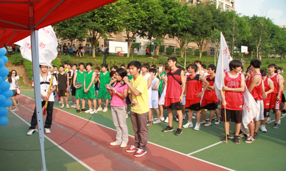 一年一度的“新生杯”篮球赛自10月14日开幕后,历经了将近一个月的赛程,至11月8日顺利闭幕。开幕式当天队伍整齐进场,主持人宣读有关事项后,比赛正式开始了。
