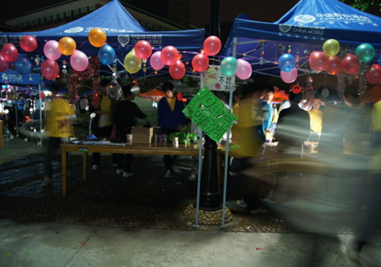 看,舞台多么夺目多彩,这些都是机电学生会各个干事们团结一致完成的。6点多的时候,负责各个摊位的班级的同学们已经开始布置了。8点正,两位主持人宣布千灯谜园嘉年华游园活动正式开始。首先,郭堪通书记和吴涛老师分别为千灯谜园嘉年华开幕式致辞。
