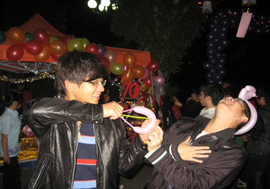千灯谜园未开始之前,各个班的摊位已经有很多人在等候了,可见今次的游园晚会非常吸引。有趣的游戏,可爱的奖品,热情的工作人员们,这些都是晚会最吸引同学的地方。欢乐就是晚会的最大卖点,同学们都乐在其中。大学的生活不仅有学习,更加有精彩的课余活动来丰富我们的大学生活。在晚会现场,到处都是五彩缤纷的气球彩带彩灯,更让人眼前一亮的是那些漂亮的灯笼。各个精致灯笼都带上了一条条灯谜,灯笼下站着一个个兴致勃勃的参与者,他们都很认真地猜灯谜。兑奖处更是车水马龙,热闹非凡。游戏不单子在摊位里进行,舞台上更有精彩的游戏,抢凳子,猜歌曲,还有更窝心的是一位男生主动上舞台送给大家一首情歌。千灯谜园嘉年华在欢乐中落下帷幕。