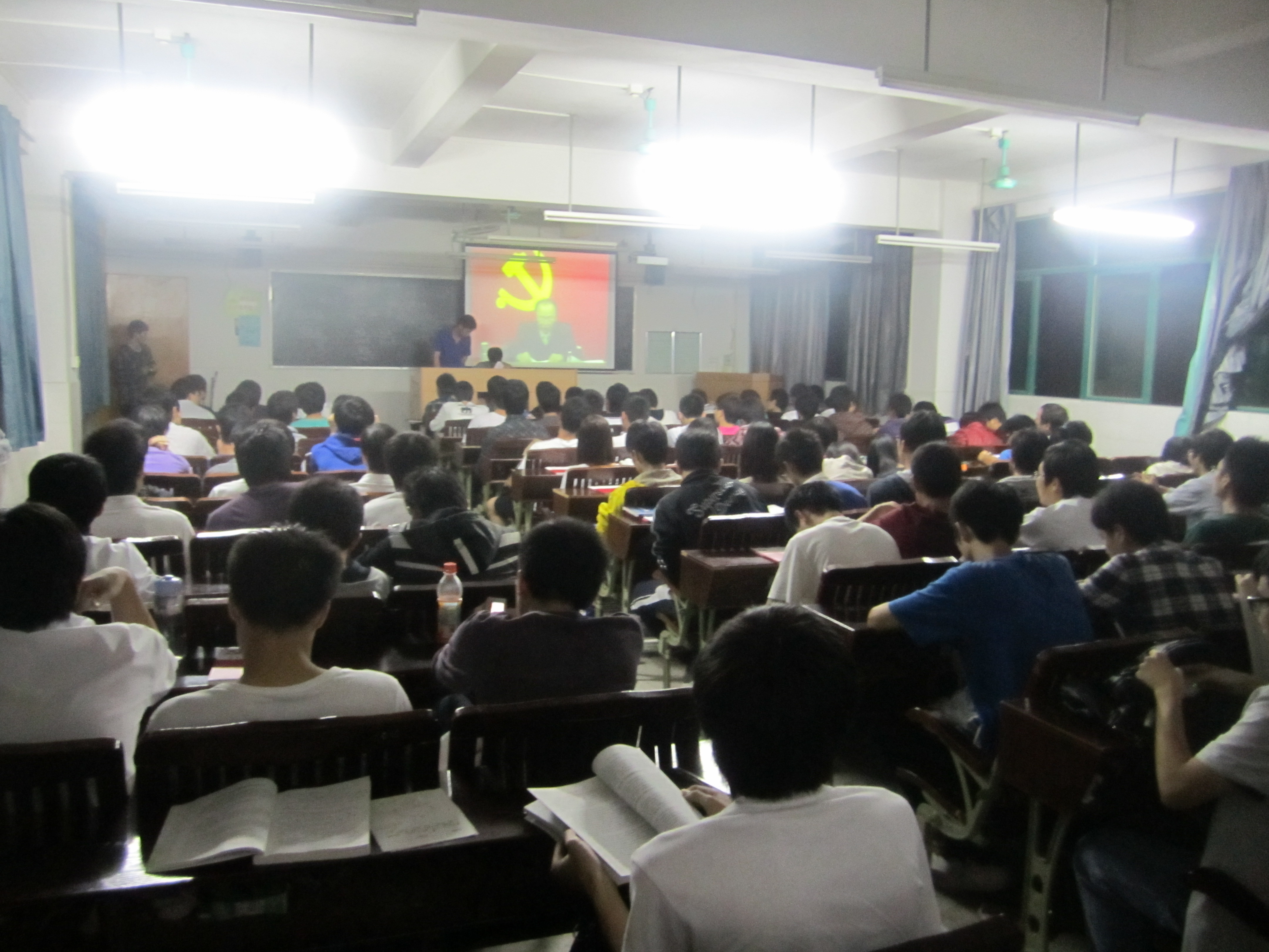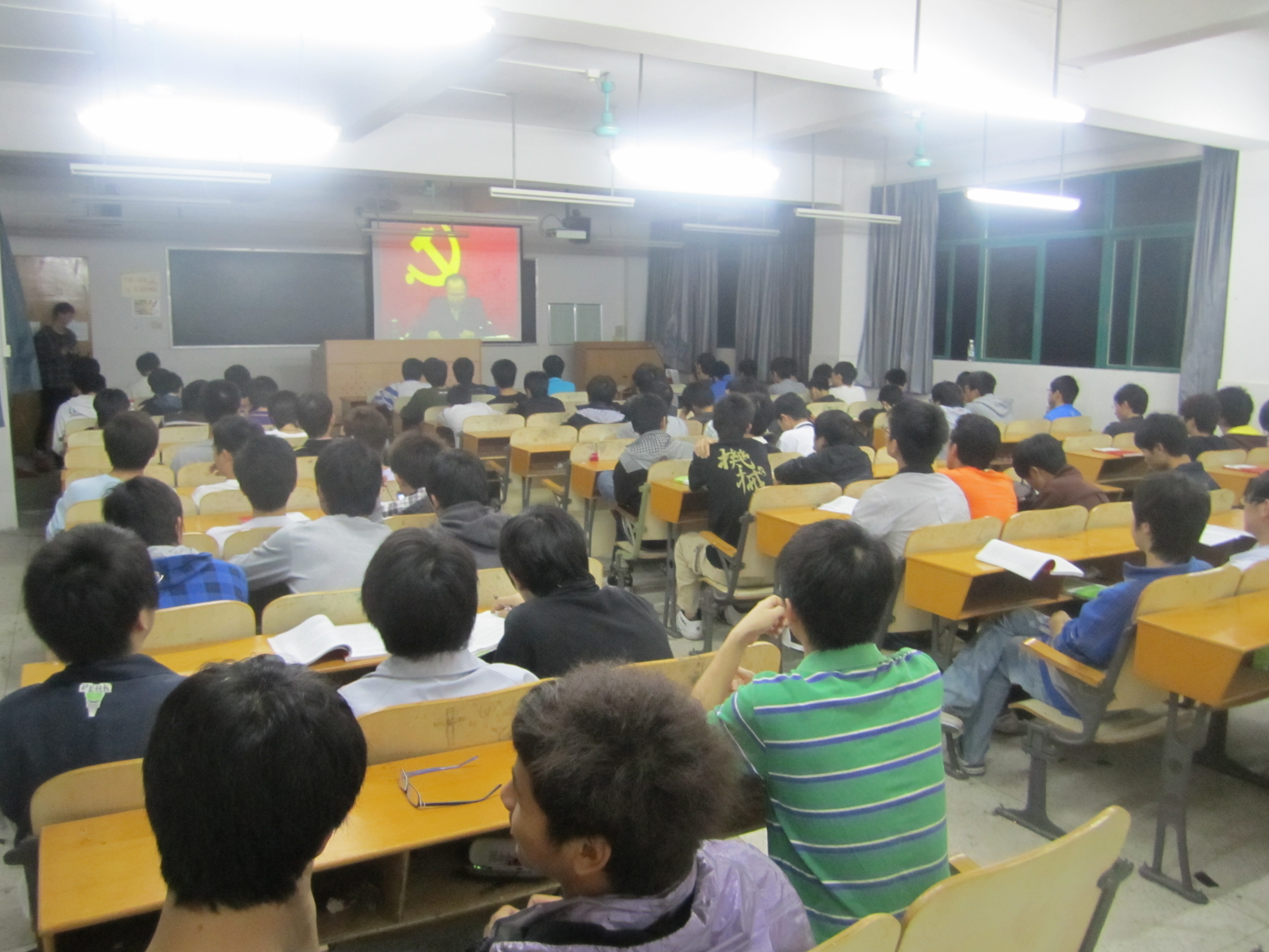 机电工程学部党支部对10级大一新生进行了一次为期3天的党课学习课程。分别在3月21日晚上,3月28日晚上,3月30号晚上为同学们进行入党教育。他们分别通过讲解与播放视频的形式让新生们对党进行了深刻的了解。