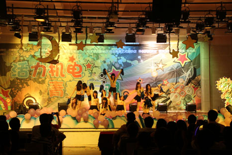 机电系女生表演的热舞《七上八下》和10级各班男生表演的男模《男儿本色》都深得观众的喜欢。在晚会接近结束时,热舞社的街舞《Julia》和机电艺术团的情景音乐剧《机电那些小事》再一次将晚会推向另一个高潮。