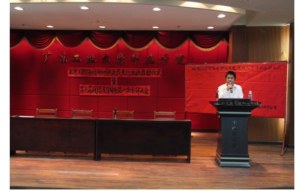 然后,广东工业大学华立学院团委吴涛书记发表了对过去一年学生会的回顾以及对新一届学生会的展望,希望新干事们能用自己的热情去干好工作与学习,尽显青春风采。接着便展示了新一届机电工程学部学生会的部长和干事成员的名单,展现出机电工程学部学生会的青春与活力。
