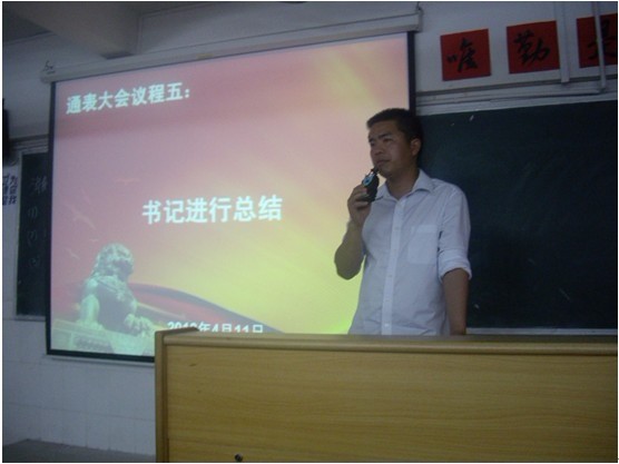 接下来书记进行了总结,书记对加入中国共产党的同学表示热烈的祝贺。也对在座的党员们提出了要求,并希望转为预备党员的同学加强对自己提高,并一如既往的做好自己作为党员的先进作用。也希望党员同志要有高尚的修养。