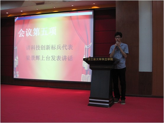 科技创新标兵代表梁景辉发表讲话