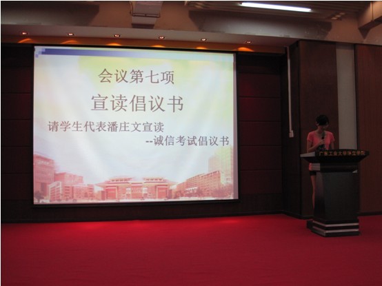 学生代表潘庄文宣读《诚信考试倡议书》