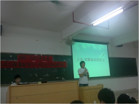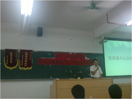 最后由郭堪通书记总结发言,书记对于学生会这一年来的表现给予了肯定和赞扬。机电工程学部在华立学院的五四表彰中荣获红旗团总支学生会的光荣称号。这无疑是学院肯定了机电工程学部这一年来的工作。书记表示对本届学生会所有成员表示了感谢;并指出了11级同学们在学生会工作后的成长与进步,鼓励大家继续在学生会里贡献力量,希望所有部门更加完善和健全并相互配合,把学生会工作做好。