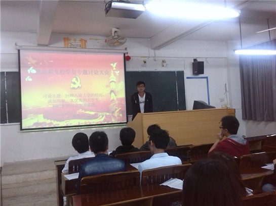 学员首先就本次的主题进行了20分钟的激烈讨论。然后学员们都一一上台发表了观点。他们回顾自己进入大学来走过的路,跟大家分享大学生活中积累的经验,他们很多人都提到,自信对我们大学生来说是最重要的;谈到如何做一名优秀的大学生,大家各抒己见,但有一点是大家都认同的一点就是:要把学习放在第一位,不断提高自己的素质。对于如何向党组织靠拢,大家都知道要不断端正自己的入党动机,不断用党的理论知识来武装自己,在生活中充分体现作为一名共产党员的先锋带头作用,努力做到在思想上入党。学员的精彩发言过后,主持人对大家的发言进行了简短的总结。