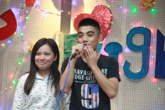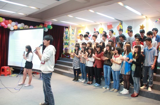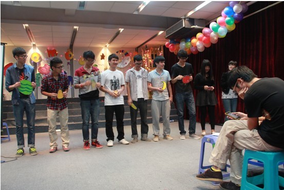 值得一提的是,晚会还特别设置了多个与观众游戏互动的环节,同学们积极参与。游戏过程中及其搞怪的惩罚方式瞬间把在场观众的热情点燃了,其丰富的奖品激发了参赛人员的斗志,在游戏中同学们完全打成了一片,场下的观众还不断给台上人加油打气,并时不时地爆发出欢乐的笑声和掌声,场面其乐融融。最后,晚会在一首温馨暖人的歌曲《爱因为在心中》中结束,所有助理辅导员同时登台合唱,为本次晚会画上了完美的句点。