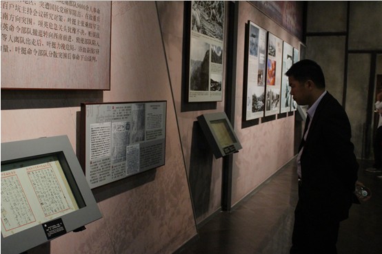 来到叶挺的故居,各位党员早已迫不及待的想去了解叶挺先生的英雄事迹以及他身前的生活点滴。走在叶挺故居纪念馆,里面的点点滴滴,无不勾起大家对叶挺先生的追思。故居里摆设了150多件珍贵的照片、实物、文物,大致概括了叶挺将军的一生;而纪念馆展馆正门上是叶剑英元帅题写的“叶挺同志纪念馆”五个刚劲有力金光闪闪的大字,里面的展览馆共分为八个展厅,大厅内竖立一座高达两米的叶挺汉白玉雕像。雕像两侧是江泽民和李鹏同志为展馆开馆题的词,江泽民题词是:“北伐名将,抗日英雄,铁骨铮铮,浩气长存”。李鹏的题词是:“学习和缅怀叶挺将军的革命斗志和历史功勋”。纪念馆用四百多件珍贵的文献、文物、图片,再现了一代名将叶挺将军短暂而光辉的一生和他的高风亮节。看着叶挺先生的名言还有后人对看赞颂的名句,许多党员都不禁拍照留念,有些还拿出笔记学习记录。