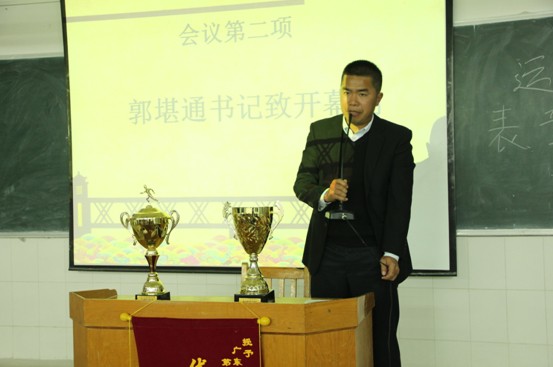 第二项是郭堪通书记致开幕词。在书记慷慨激昂的演讲下,我们可以感受到书记对这次校运会取得的成绩的满意和肯定。这给了大家更大的信心为机电学部争光。
