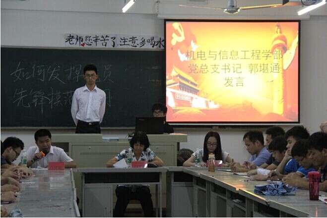 5月22日下午6:30,机电党总支在3号楼205召开了主题为“如何发挥党员先锋模范作用”的民主生活会。会议由王俊民同志主持,机电学部全体党员参加了本次会议,出席的嘉宾有学院党委书记王锦秀、机电党总支书记郭堪通以及陈漾师姐。