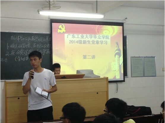 根据学院党委的工作计划,结合学部党总支的实际情况,2014年9月18日晚上7点,我学部党总支组织十几名高年级正式党员在一号教学楼多媒体课室对2014级新生学员开展党章第二讲的学习。