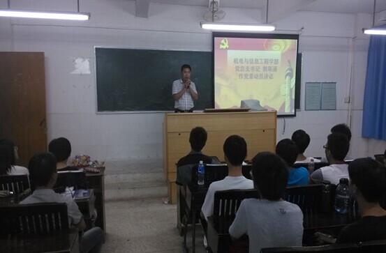 为了进一步加强2014级新生学员对党章的学习,提高学员们的党性修养,2014年9月23日晚上7点机电学部党总支在1号教学楼多媒体课室组织开展了党章第三讲的学习。