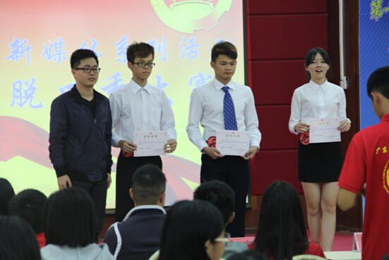 决赛开始前主持人宣读比赛规则和评分标准,然后各学部经过重重筛选的代表小组上台配合PPT演讲,一人播放PPT一人配合PPT演讲,各组通过丝丝相扣的演讲和默契的配合从不同角度诠释了“践行社会主义价值观,演绎精彩青春梦”这个核心。