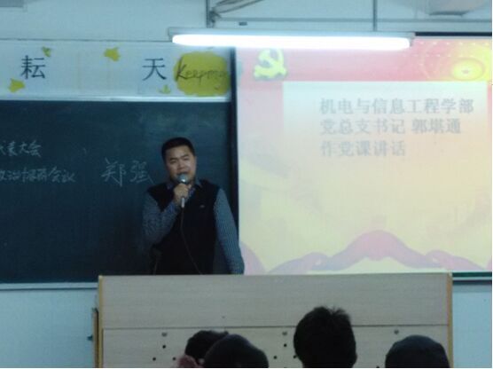 2015年3月24日晚上19:00分,机电学部党总支在第一教学楼401、404和502等多媒体室开展第14期党课第二讲的学习。学部党总支书记郭堪通以及学部各支部书记都亲临党课课堂观看了解党课上课情况。