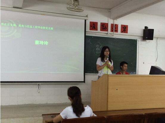2015年6月13日晚上6点30分,机电学部党总支在第一教学楼404课室召开毕业班学生党支部预备党员转正大会。毕业班学生党支部书记张亚婉老师出席了本次会议。