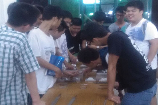 9点下晚修后,同学们组队兴致勃勃地来到我们的工作室。此时,会长和部长们将早已准备并摆设好在桌面上的精美模具和机械设备展示给新生们看,并耐心详细地向各位师弟介绍各类模具和机械的功能、应用。来参观的新生当中,既有本专业的师弟,也有其他专业,譬如自动化和电气班的师弟。他们挠有兴趣地一边打量着这些模具,一边认真聆听着师兄们的讲解。