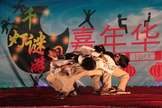 晚上7点,郭堪通书记宣布晚会正式开始。机电艺术团为我们带来了唱歌、舞蹈、魔术、模特秀一系列精彩的表演,场边不停传来观众的掌声与尖叫声。与此同时,各班摊位也正式开摊。各种诱人的奖品,各种好玩的游戏,还有这次晚会的猜灯谜活动。夹硬币、猜歌词、过迷宫、投筷子、抛圈子、猜灯谜、记扑克、找同伴......同学们都在游戏中找了欢乐,在猜灯谜中增强了精神文化素质。同学们在摊位玩完游戏以后可以获得盖章,然后集满章以后去抽取大奖。我们放下了往日沉重的包袱,忘记了紧张的学习压力,在这次游园晚会中露出了喜悦的笑容,得到了久违的快乐。