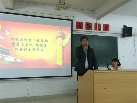 大会第三项议程由机电学部党总支郭堪通书记作会议总结讲话。讲话中郭书记对本批通表对象给予了高度认同,肯定了大家所取得的成就。他强调新发展的预备党员要进一步端正入党动机,加强对党的认识,同时要兼顾好学习和工作等各个方面,合理安排好自己的时间,学会平衡分配学习和工作,做到各个方面起到模范带头作用,要以身作则,不违纪、不违规,严格要求自己。