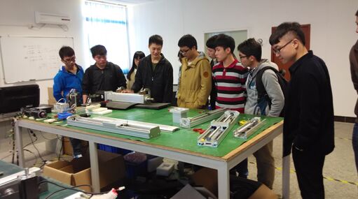 首先我们参观了组装部,在这里的黄嘉浩师兄非常耐心的给我们讲解他工作环境、内容,介绍他是如何调试机器到合格的。大家的很多问题,他也一一给我们做了解答。