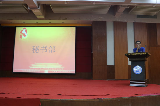 出席本次大会的学部领导有:学部党总支书记唐巍,团总支书记陈晓生老师以及陈志鹏师兄等。参加本次大会的还有机电学生会主席团以及各部门的部长和干事。大会开始,首先播放总结视频。总结视频播放结束后,机电学生会主席黄嘉炜上台发表讲话,总结这一学年学生会的主要工作,肯定了各部门的辛勤付出,并且表达了自己对学生会的发展期望。黄嘉炜主席精彩的演讲博得了在座同学的热烈掌声。