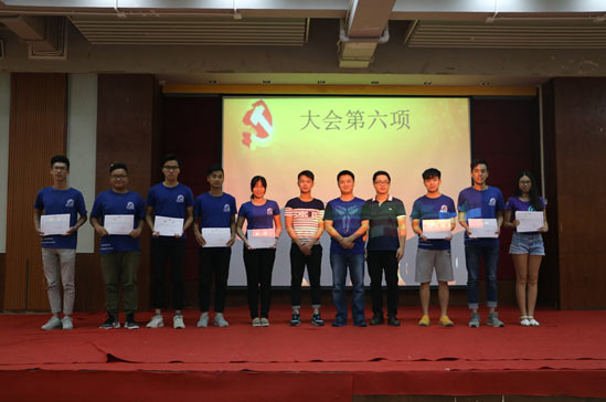 各部长讲话结束后,主持人邀请学部领导上台,为部长们颁发优秀部门奖,为主席团颁发主席聘书并合影留念。