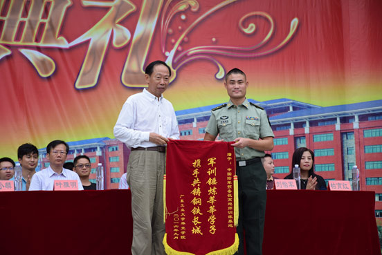 9月2日上午,我院2016级新生军训总结暨表彰大会在综合楼前隆重召开。广州华立投资有限公司叶雅明总经理,广东陆军预备役高炮师训练基地刘宇飞少校,华立园兄弟院校的领导,学院领导董小麟、郭颂平、刘怡军、温孝胜、柏育红、王学军,相关部门负责人及2016级全体新生出席了总结大会。此次大会由温孝胜副院长主持。
