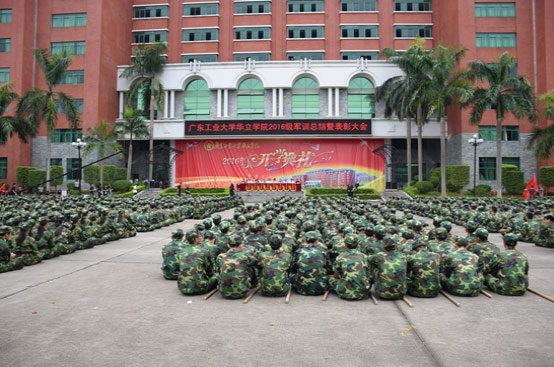 最后,执行院长董小麟作了军训总结讲话。他指出,我院2016级新生军训已经获得圆满成功。他代表学院向刻苦训练的全体同学表示亲切的慰问!向广东陆军预备役高炮师训练基地全体承训教官表示衷心的感谢!教官们以尽职尽责、严格要求;学院各部门各司其责,协同配合;同学们不仅接受了国防法制教育、军姿队列训练等,还增强了组织纪律观念,锤炼了吃苦耐劳的精神和坚韧不拔的意志。董院长希望2016级新生在军训结束后,继续发扬军训精神,努力学习文化知识,积极上进、勇往直前,为实现中华民族伟大复兴的中国梦做出应有的贡献!