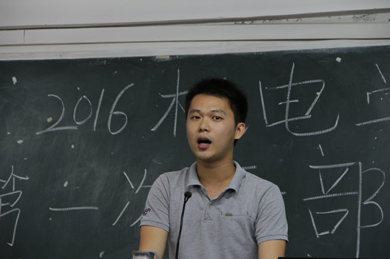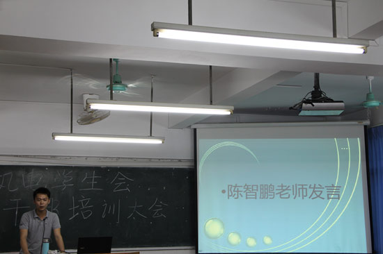 随着团歌的奏响,大会正式的开始了。本次会议只要由团总支书记陈志鹏老师进行发言。