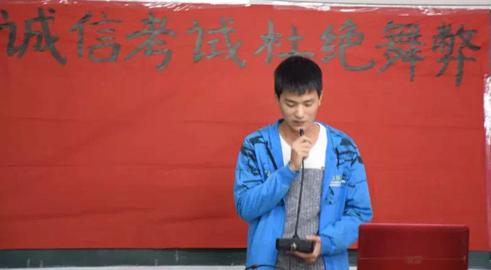 接下来,由学生代表陈天良师兄宣读诚信考试倡议书,并强调作为一名大三的师兄,更应该加强自身的修养,充分发挥出模范带头作用,带领广大青年严肃考风考纪、争做有为青年。