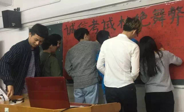 最后参与大会的所有人都上台签署诚信考试倡议书。