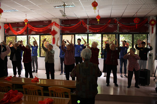 此外,志愿者们还给老人献上了精心准备的节目表演,如表演小品、魔术,演唱歌曲等,为活动增添和谐融洽的气氛,赢得了老人们的欢心和热烈的掌声。同时,爷爷奶奶们也给大家带来了“生命之河”的手语舞。最后,活动在大家的欢声笑语中结束。