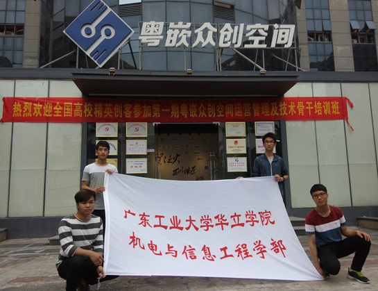 为推动学生双创发展,培养创新型人才,在机电学部组织安排下,2017年4月8日上午,吴宏裕、蔡韬、黄澎奋、张鸿辉等4名学生前往粤嵌众创空间参加了为期三天的培训。
