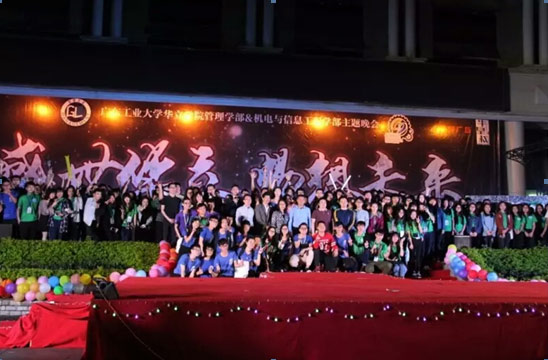 2017年4月25日晚上19:00,由机电与信息工程学部与管理学部联合举办的“盛世华立,畅想未来”晚会在综合楼广场举行。出席本次晚会的嘉宾有:广东工业大学华立学院党委书记刘怡军、学院学生处处长李玉林、管理学部部长李季霞、管理学部教授张德龙、管理学部党总支书记 李炽平、机电学部党总支书记唐巍、经济学部党总支书记林秋生和各学部团总支书记、老师。此次晚会旨给同学们提供一个展现自己的舞台,让同学们的青春活力通过节目的形式展现出来。