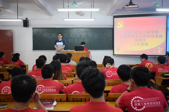 为了深入贯彻落实党的十八大精神,加强党员之间的思想交流,促进彼此共同发展,机电与信息工程学部党总支于2017年5月18日,在一号教学楼610举办了以“牢固反腐倡廉理念,增强为民服务意识”为主题的党组织生活会议。本次会议邀请了机电与信息工程学部党务管理办公室指导老师陈晓生,团总支书记陈智鹏。