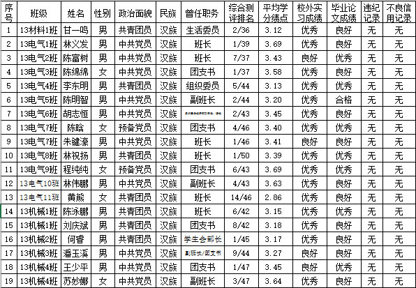 机电与信息工程学部2017届优秀毕业生初审名单公示
