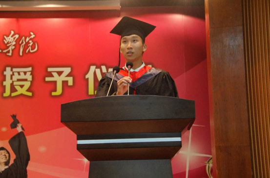首先,刘怡军书记上台发言,他希望同学们在今后的人生旅程上一定要常怀感恩、坚守梦想、勇于担当,并且勉励毕业生同学传承和弘扬爱国精神,担负时代重任,成为一名不平凡的年轻人。接着,优秀教师代表张亚婉上台发言,她表达了所有母校老师对毕业生的叮嘱和希冀,并且鼓励所有学子在今后的工作中,能够带着期待与希望去探索、去奋斗,写下自己的无悔人生。紧接着,优秀毕业生代表林继学同学上台发言,林同学感谢母校四年栽培,并承诺来日一定更加勤奋学习,立志成为母校的骄傲。最后,由柏育红院长宣读授予学士学位证的决定,随即,柏育红院长和刘怡军书记分别向17届毕业生们颁发学士学位证书。