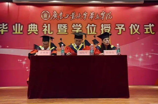 “今日你以母校为荣,来日母校以你为傲”。2017年6月24日,广东工业大学华立学院机电与信息工程学部于图书馆一号报告厅举行了2017届毕业典礼暨学位授予仪式。此次毕业典礼出席的嘉宾有:广东工业大学华立学院党委书记刘怡军、副院长柏育红、机电与信息工程学部部长黄华养、机电与信息工程学部党总支书记唐巍以及学部的教师代表。本场毕业典礼由柏育红院长主持。国歌庄严的响起,为本次典礼拉开了帷幕。