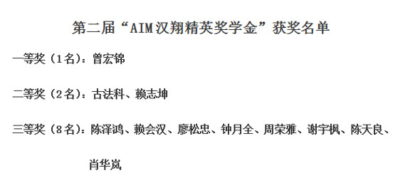 附第二届“AIM汉翔精英奖学金”获得者名单: