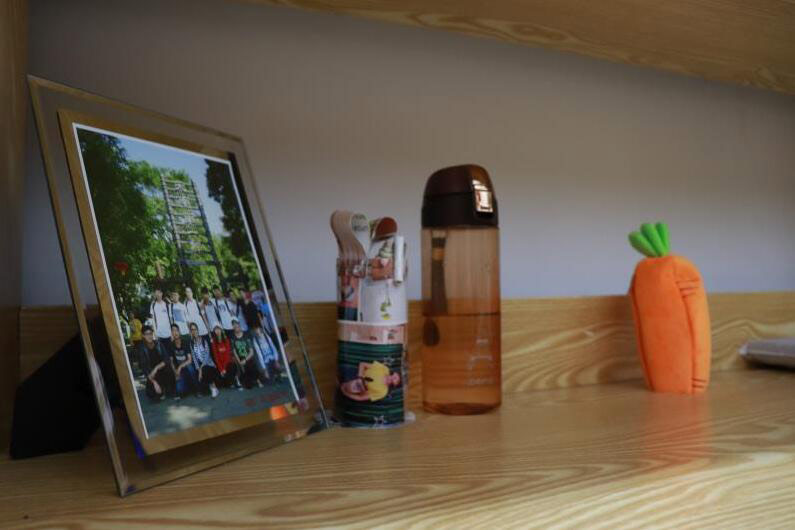 学生们有的在在墙上,柜子上贴上漂亮的墙纸,选择了各种钟爱的贴纸来装饰;有的在桌子上摆上了具有自己特色的精致的装饰品;而有的的则在墙上贴上他们的照片,照片墙上满满都是他们的回忆,每一个参加宿舍DIY活动的人都在用心的装饰着宿舍。