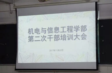 2017年11月21日,为加深干部的素质、发挥干部的模范带头作用、促进学生会的发展和建设,机电与信息工程学部学生会在一号楼509召开第二次干部培训大会,学生会主席团、各部门部长参与这次会议。本次会议由机电学部团总支书记陈智鹏老师主讲。团歌的庄严响起,为本次会议拉开帷幕。