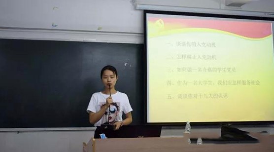 接着由在校学生党员同志向同学们分享自己的入党历程与心得体会,学员们都聚精会神地听着,并且上台分享党课三讲以来自己的收获,不仅活跃了课堂气氛,也提高了同学们的思考讨论能力。