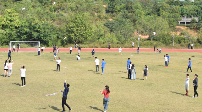 风筝节:一年一度的风筝节鼓励大家走出宿舍,奔向大自然,呼吸新鲜空气,所以希望大家可以多运动,不要沉迷网络。大家带动手上的风筝奔跑寓意大家带着梦想不断前行,也让大家回忆起儿时的乐趣,回忆最初的梦想。