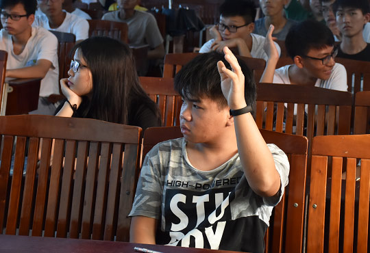 讲座中途的提问环节,同学们都踊跃的举手参与,梁经理仔细耐心的为同学们解答,为了让同学们更容易理解,他特地列出了许多例子来帮助同学们了解。