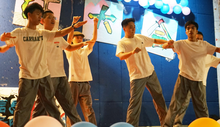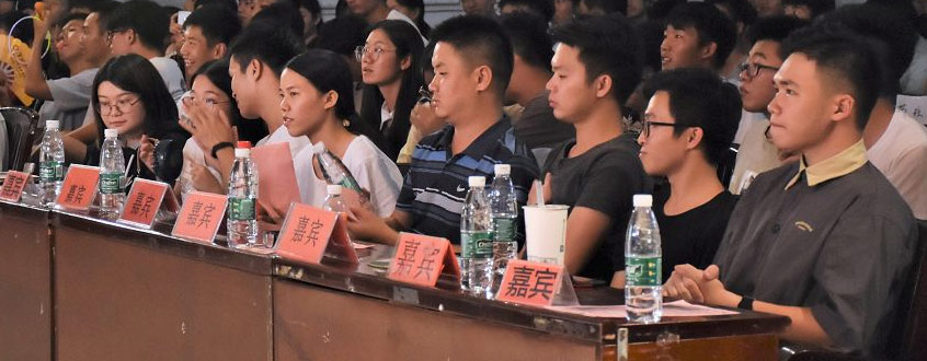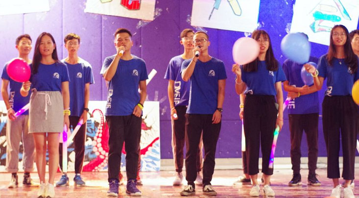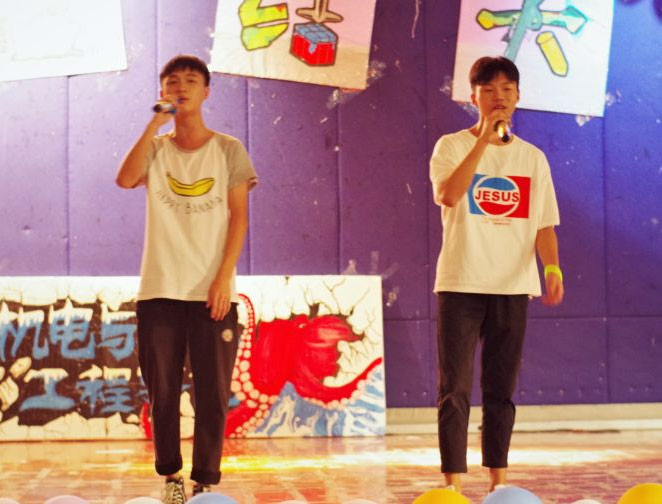 最后的节目是由新生们的带班师兄师姐们带来合唱表演,同学们看着自己的带班在台上放声歌唱不禁连连喝彩。合唱节目结束后大会已然接近尾声。