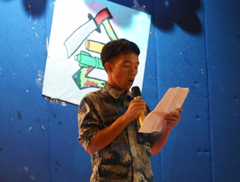 接下来是为军训积极分子颁发证书,以表彰他们在军训中的优异表现。接着由新生代表上台发言,给我们分享了他在军训中的点点滴滴。每天要站几小时的军姿,踢不完的正步,来自教官的训斥,经历的此次军训之后,让他身心变得更加刚毅,意志变得坚强,更加有勇气面对生活中的挑战。