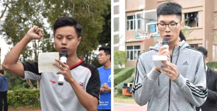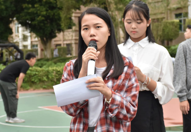 致辞完毕后,各班级代表入场。紧接着裁判代表发言:裁判队伍将践行体育道德,履行裁判职责公平、公正地对比赛进行裁决。然后是球员代表发言:遵循比赛规则,秉承友谊第一,比赛第二的宗旨。